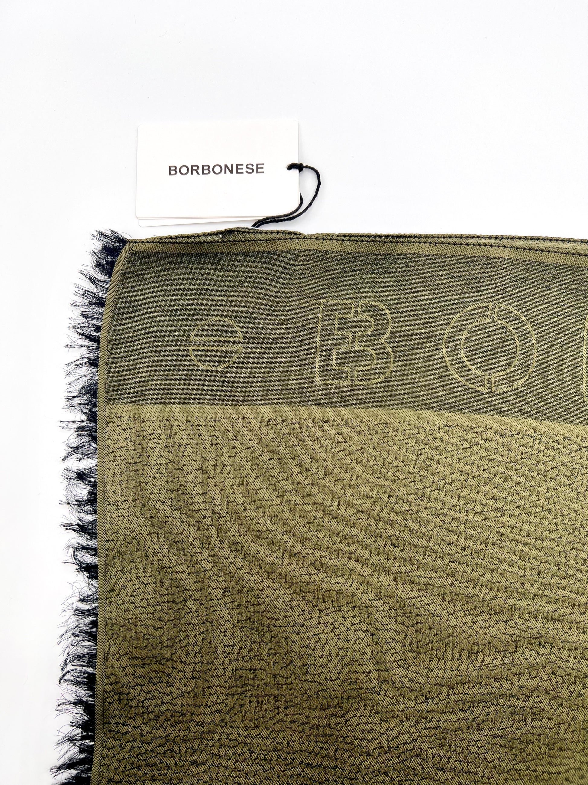 Stola in misto modal realizzata in fantasia jacquard Op sui toni del verde. Piccola frangia sul lato più corto. Disponibile anche ne l colore merlot, blu, nero e mushroom.