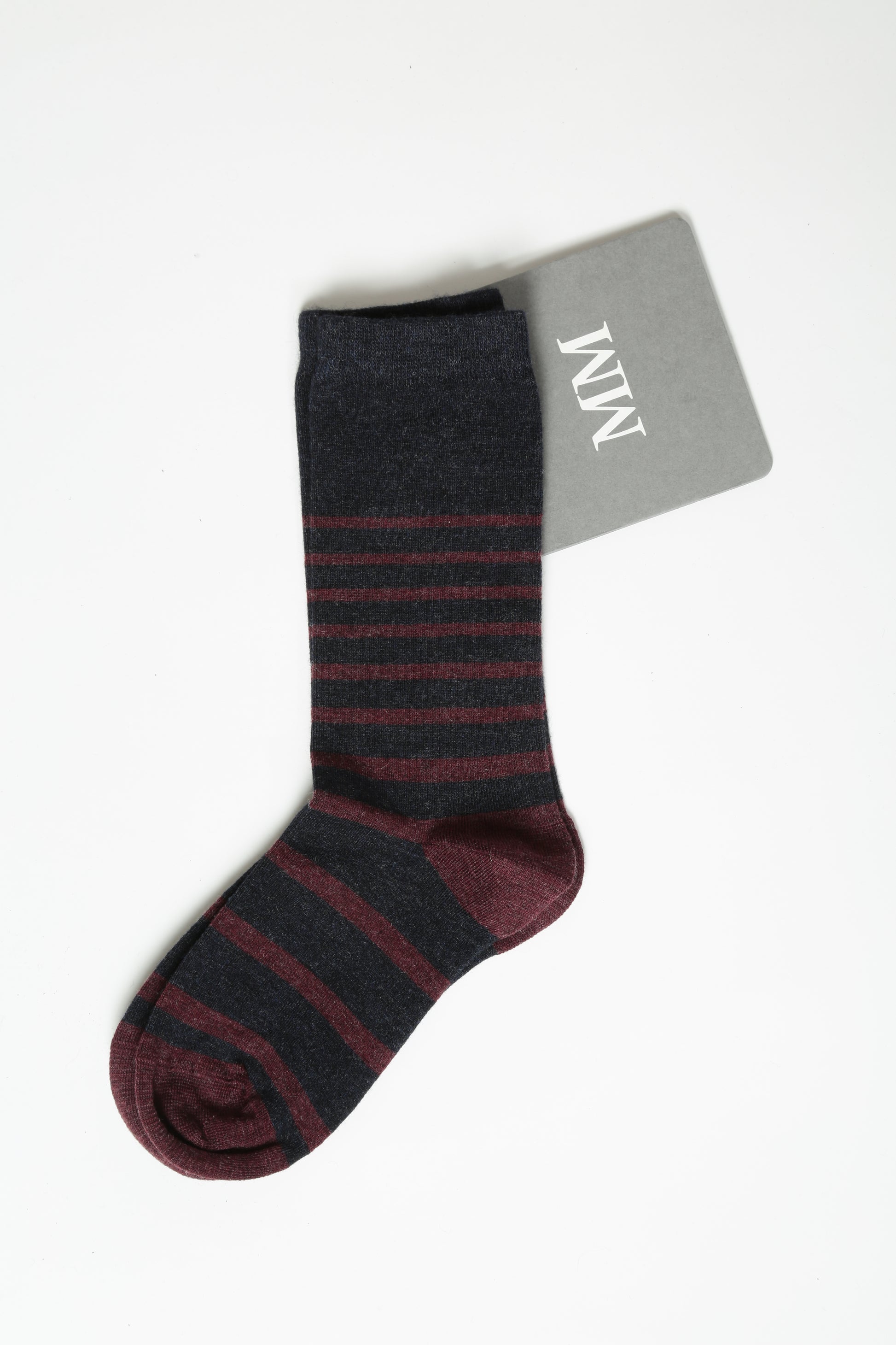 Calza corta realizzata in filato rasato di misto cachemire. Bordo elastico con logo MM. Disponibile anche nella variante grigio/nero.