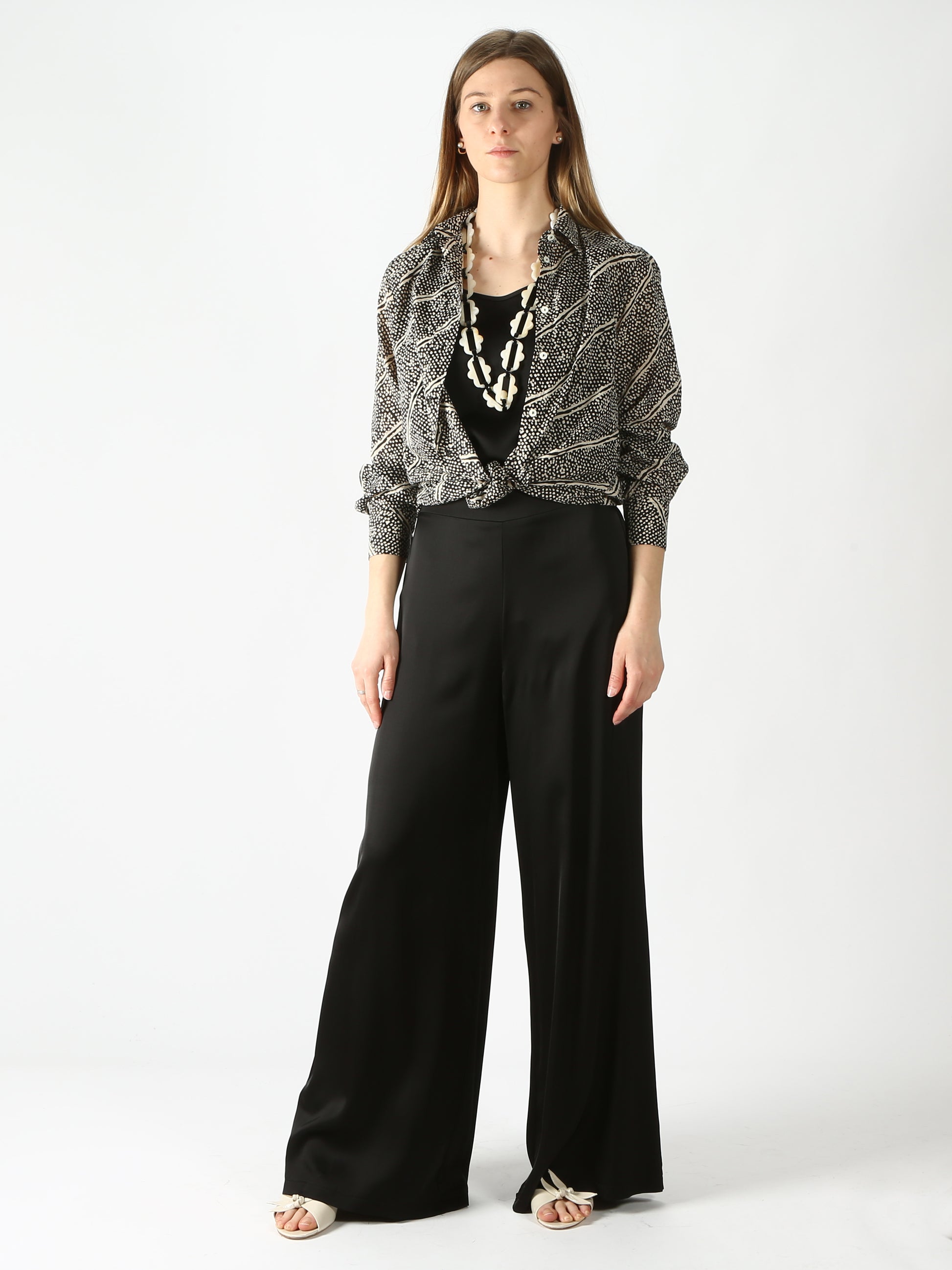Pantalone a palazzo. Elastico in vita nella parte posteriore. Volume ampio. Fondo 36 cm. Made in Italy. Possibilità di abbinarlo al suo top - art. Carol-