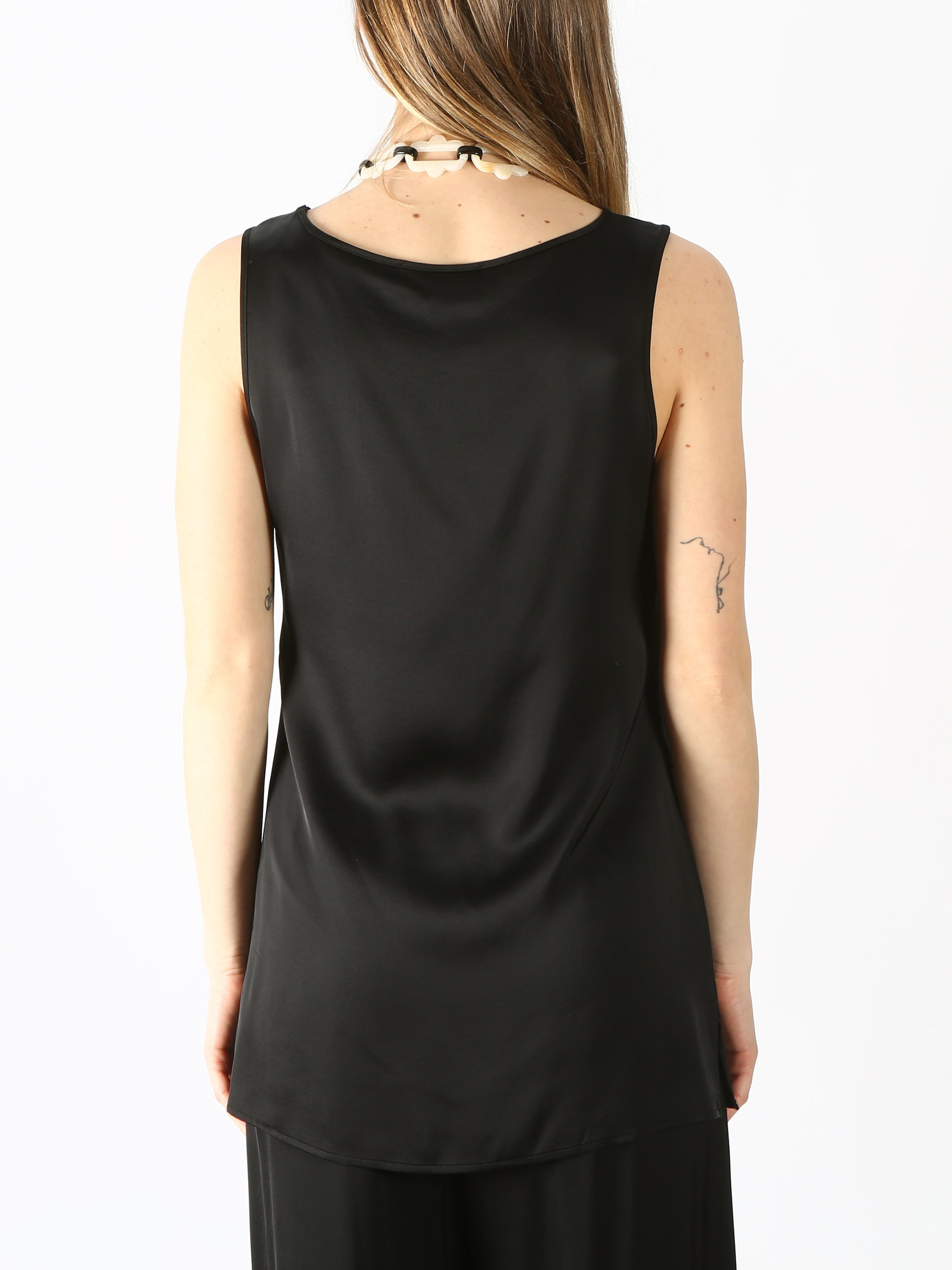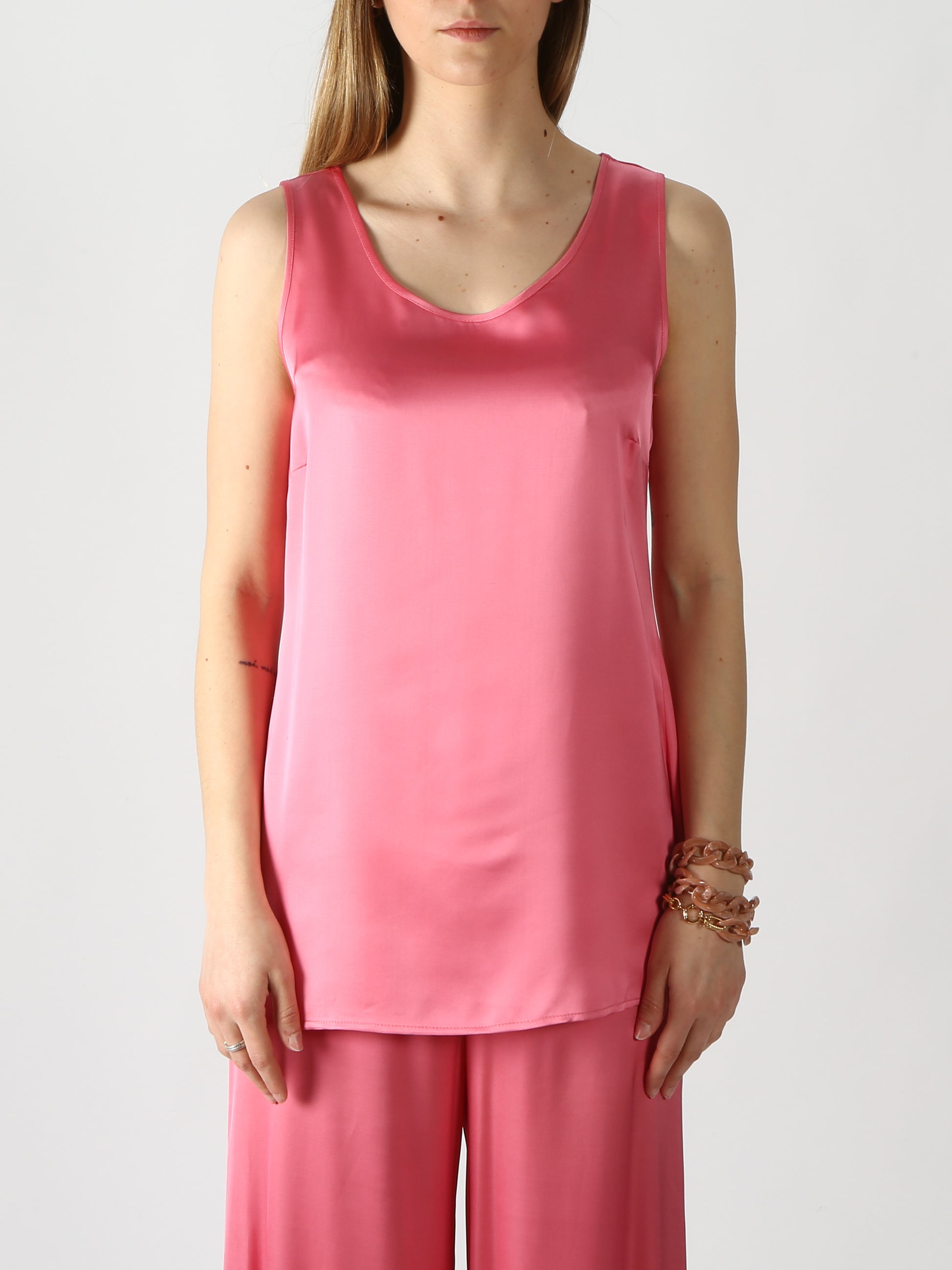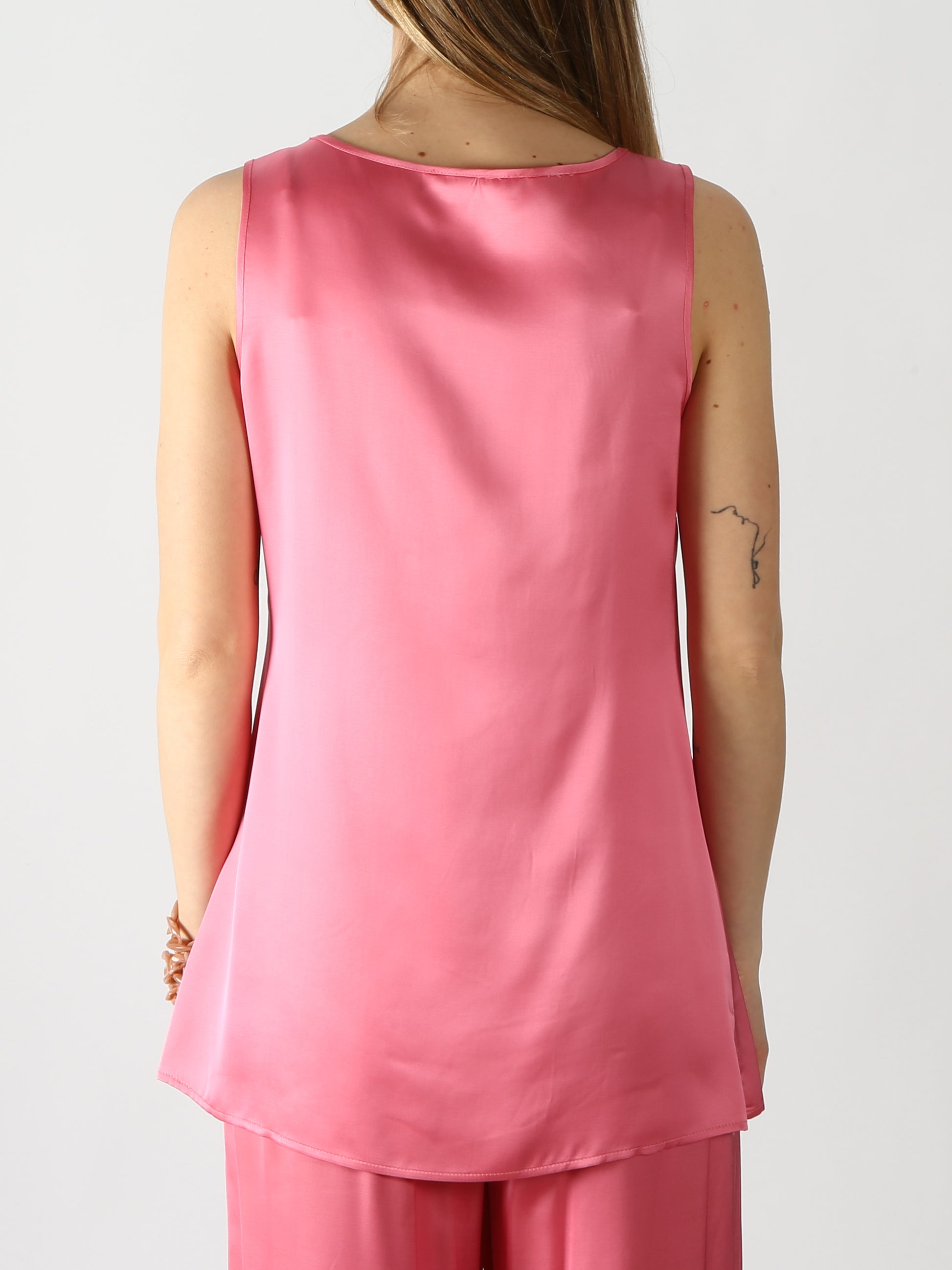 Canotta in raso. Scollo tondo. Spalla larga. Volume morbido. Made in Italy. Possibilità di abbinarlo al suo pantalone - art. Farfalla raso -