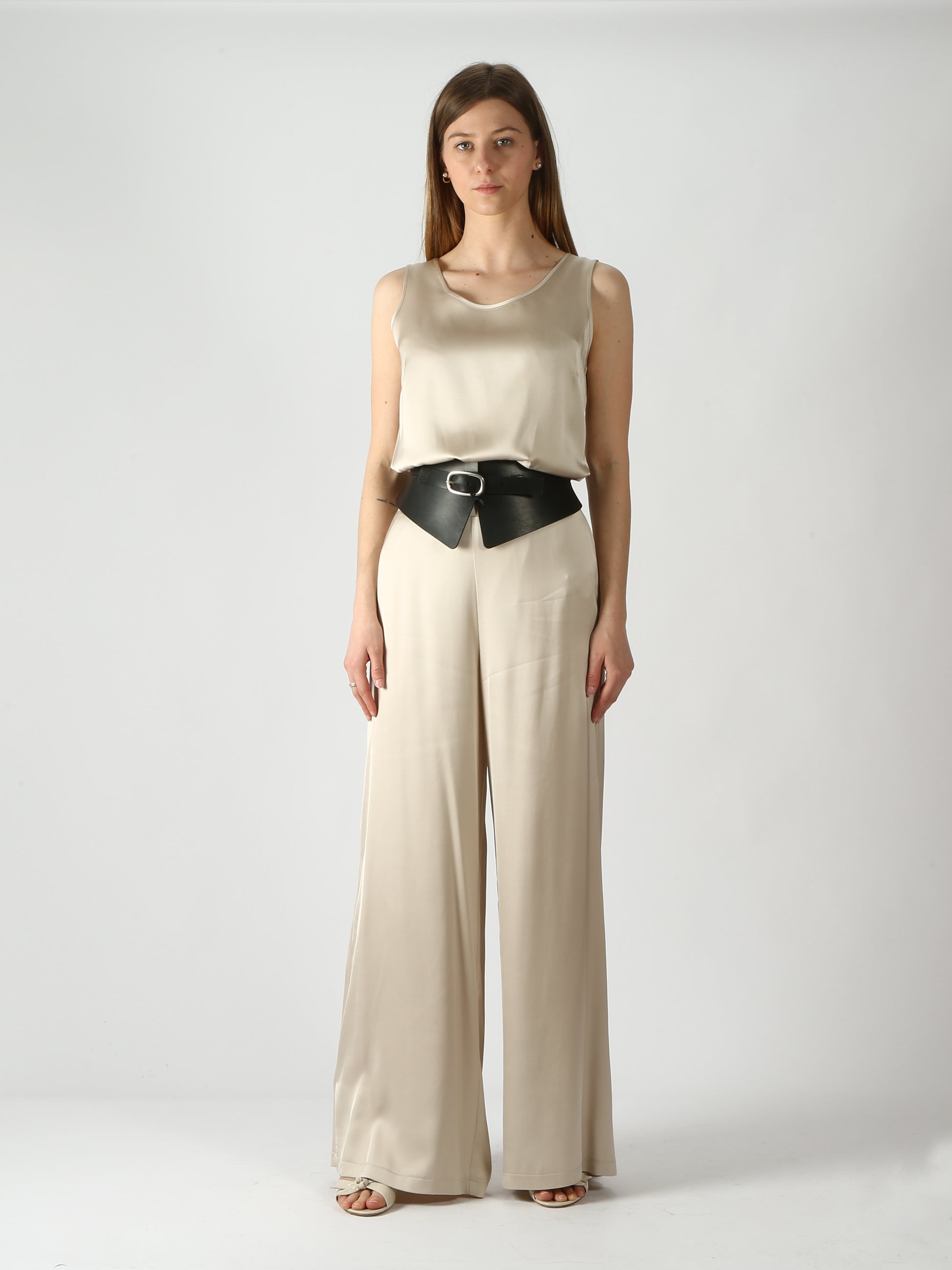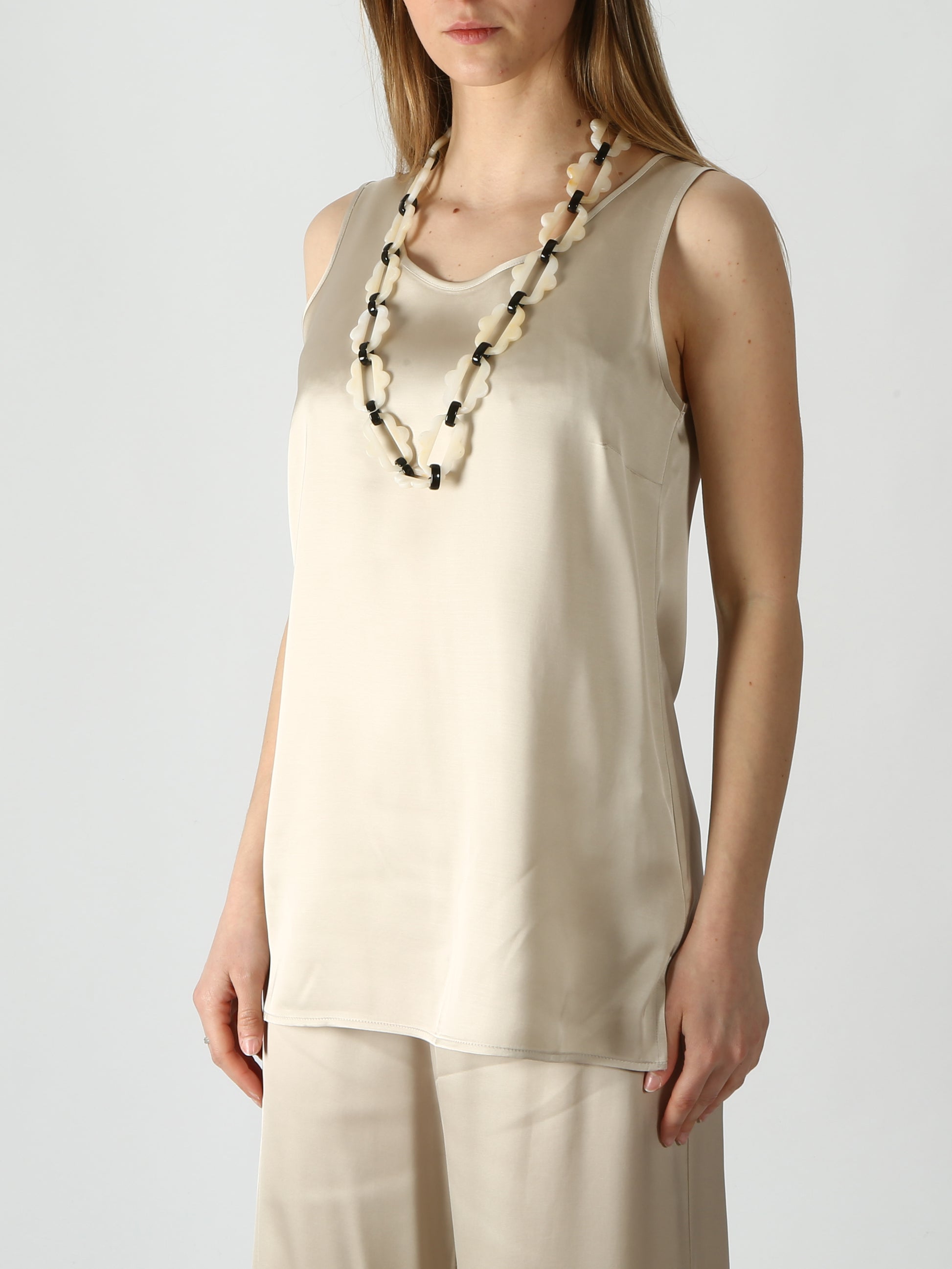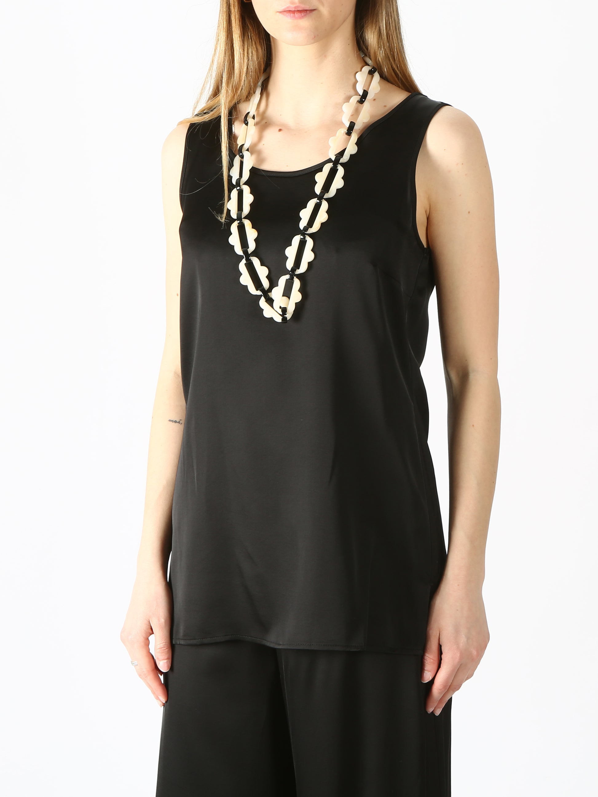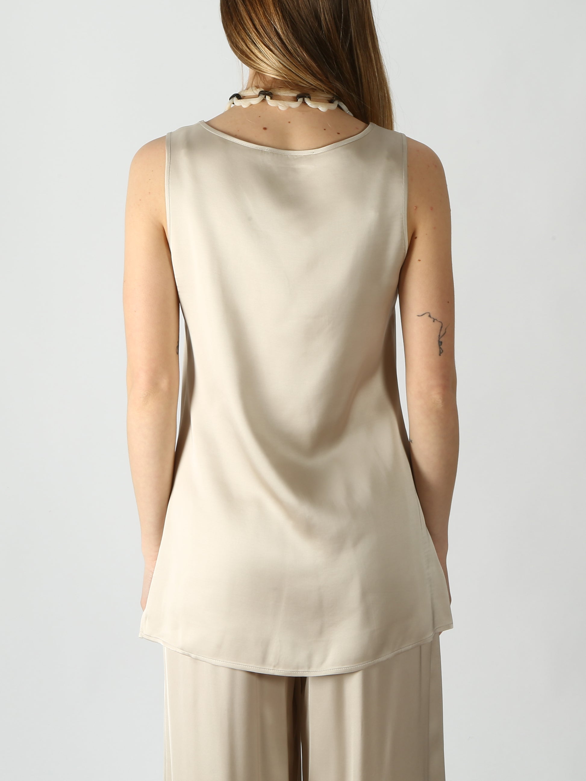 Canotta in raso. Scollo tondo. Spalla larga. Volume morbido. Made in Italy. Possibilità di abbinarlo al suo pantalone - art. Farfalla raso -